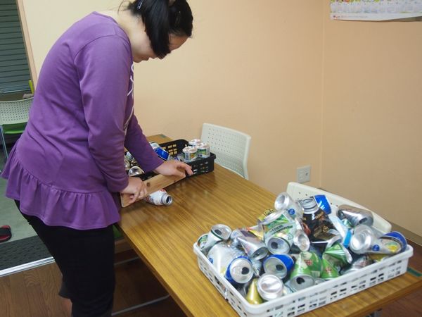 なないろさん(生活介護)の空き缶作業です。